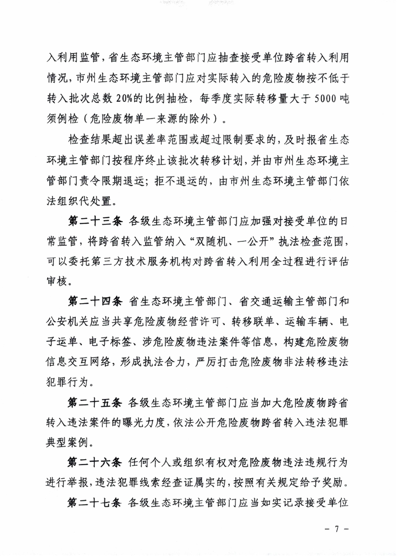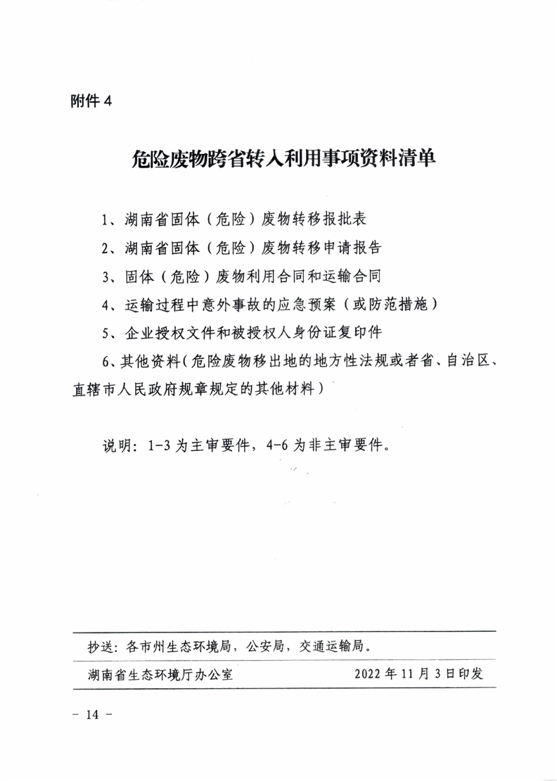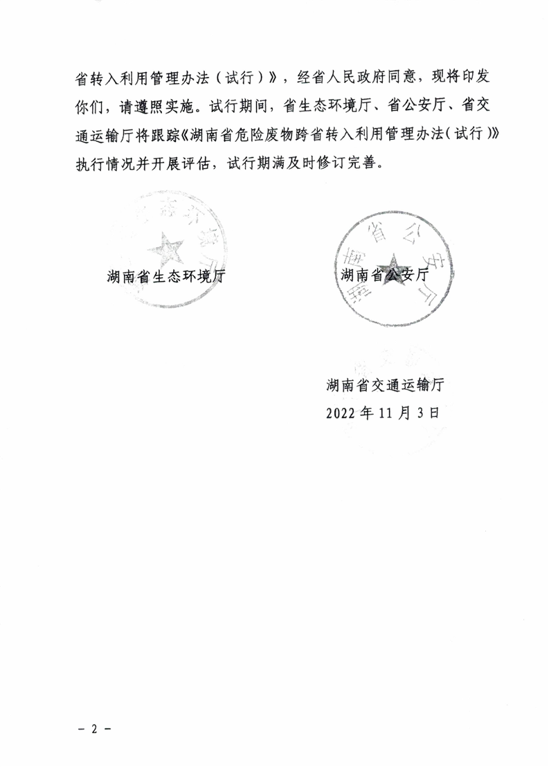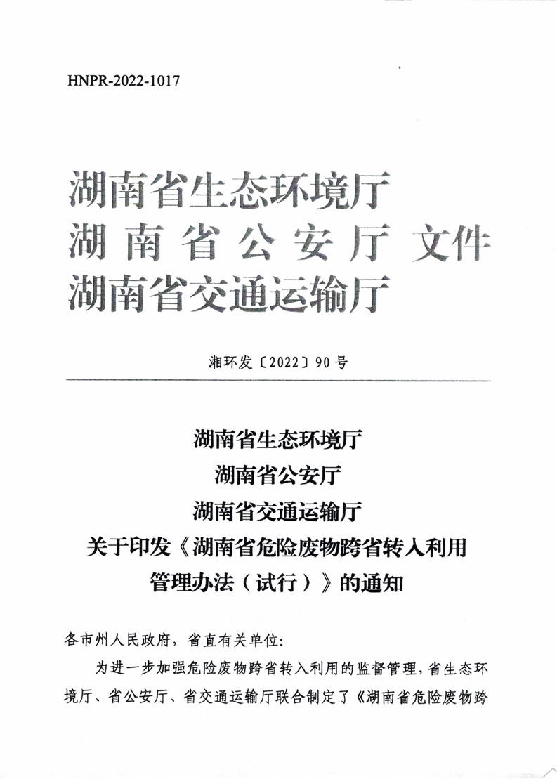 关于印发《湖南省危险废物跨省转入利用管理办法(试行)》的通知
