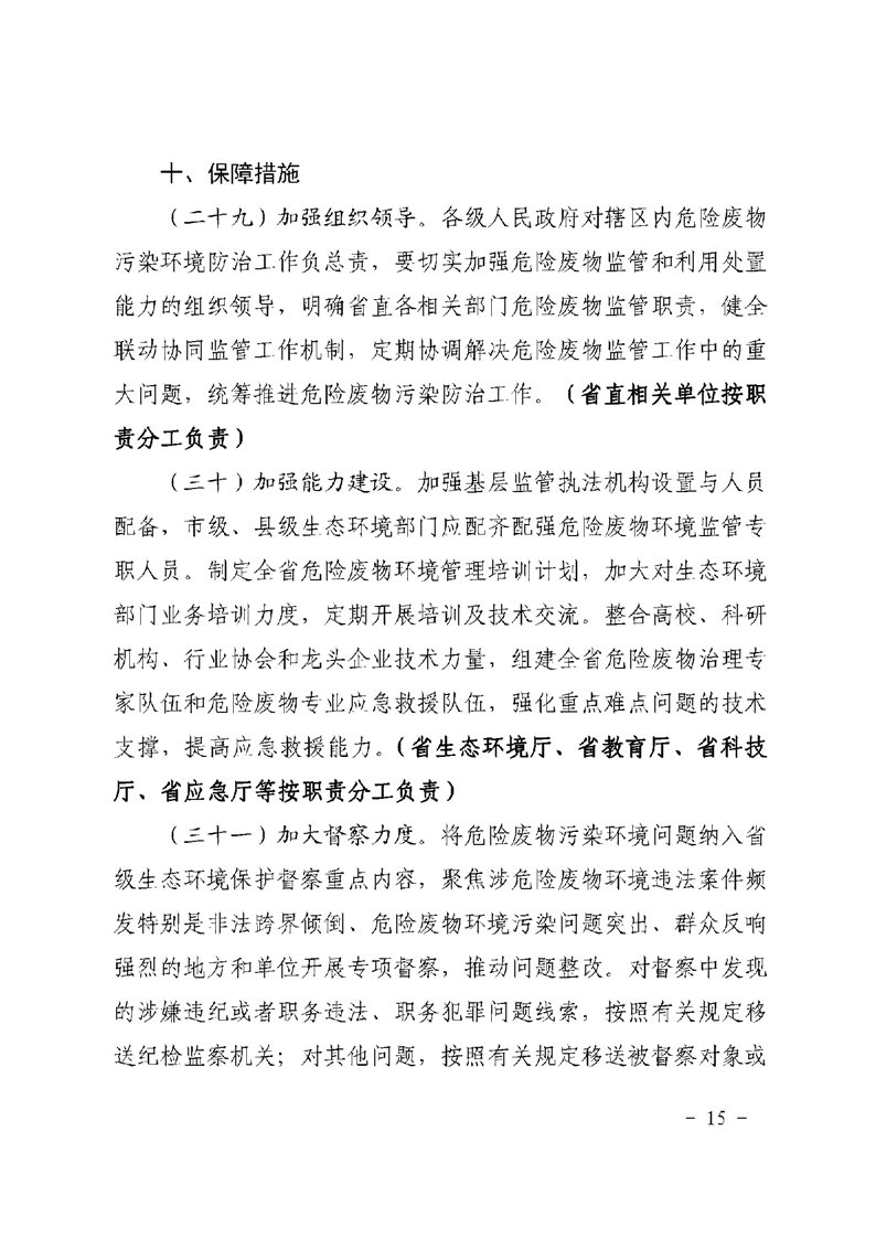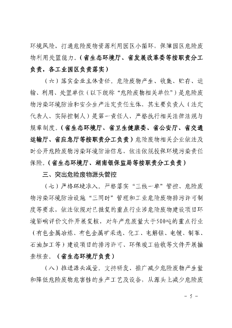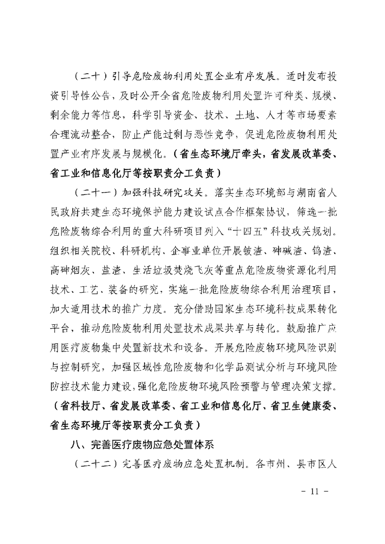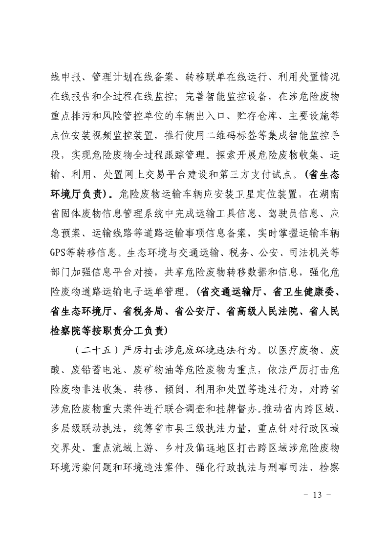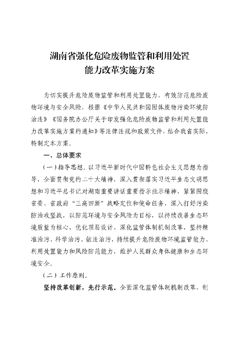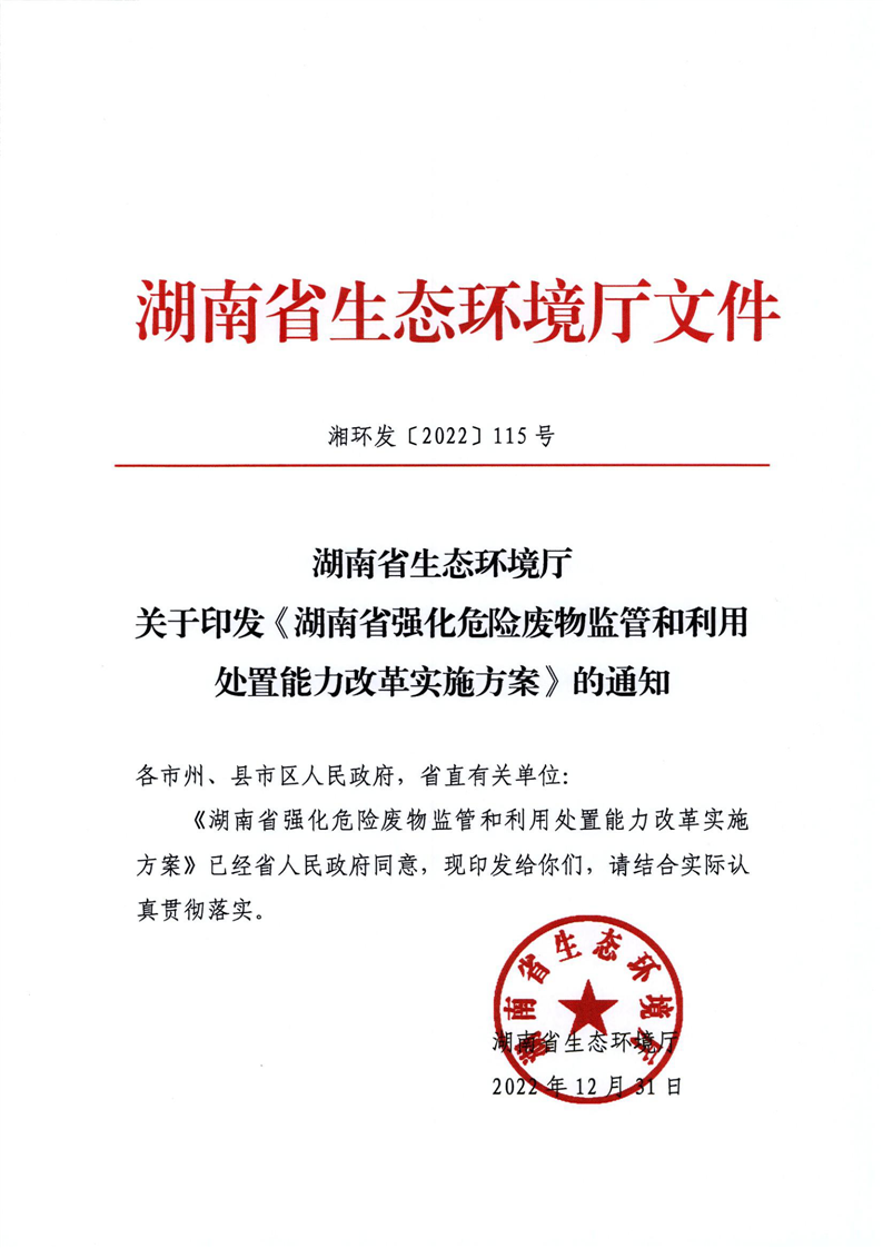 关于印发《湖南省强化危险废物监管和利用处置能力改革实施方案》的通知