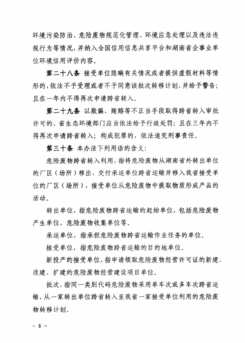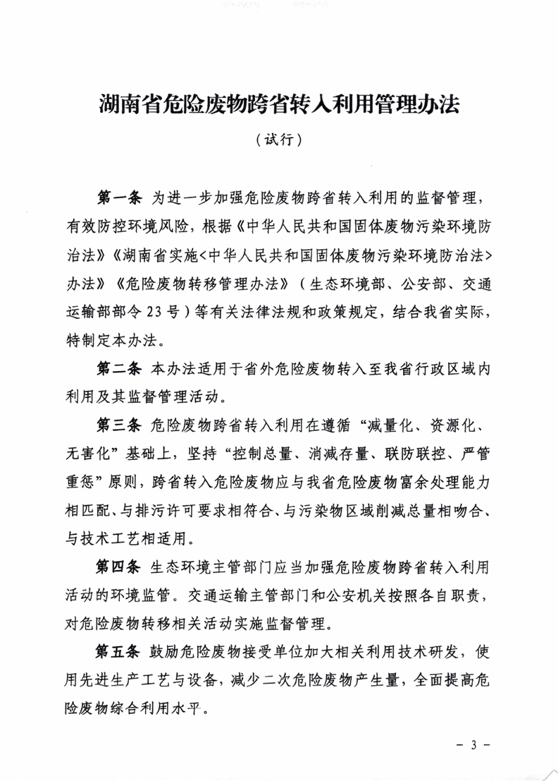 关于印发《湖南省危险废物跨省转入利用管理办法(试行)》的通知