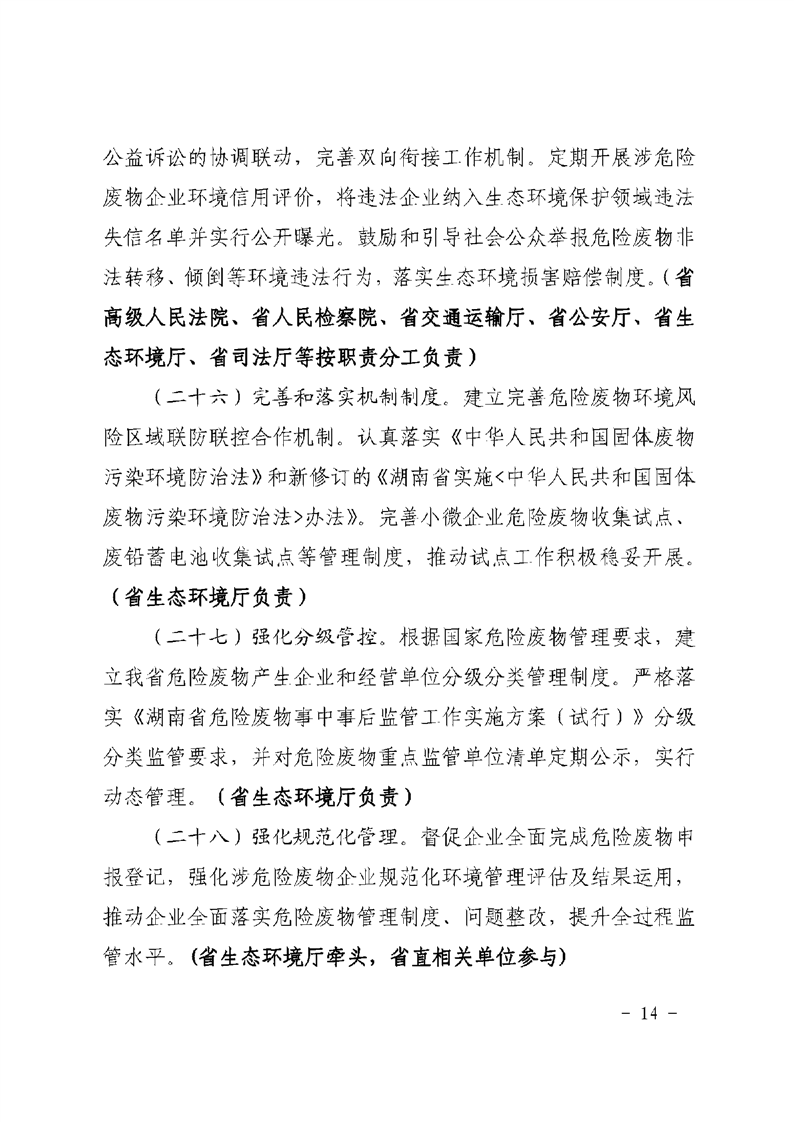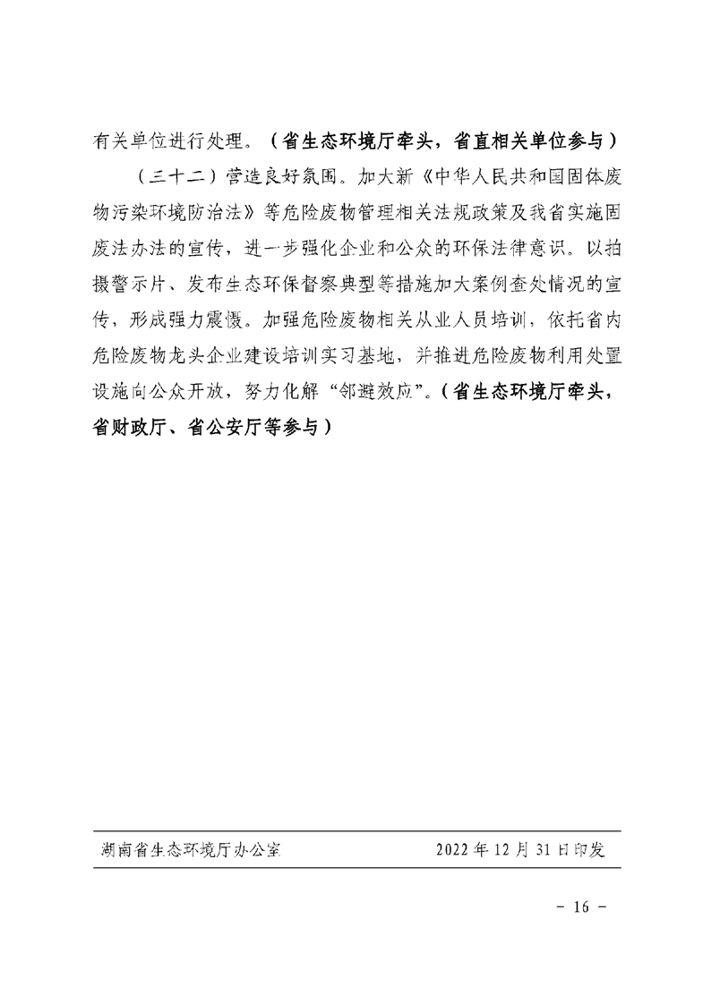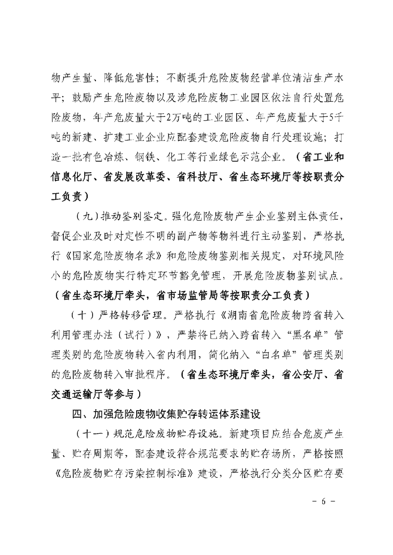 关于印发《湖南省强化危险废物监管和利用处置能力改革实施方案》的通知